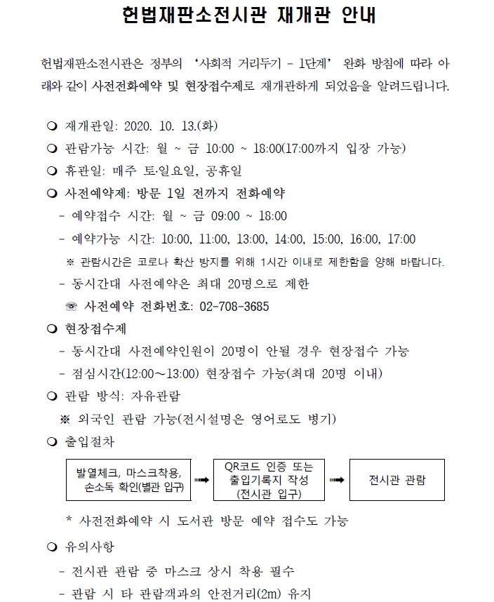 안내 헌법재판소전시관 재개관 안내 심판제도과 / 2020. 10. 12. / 461