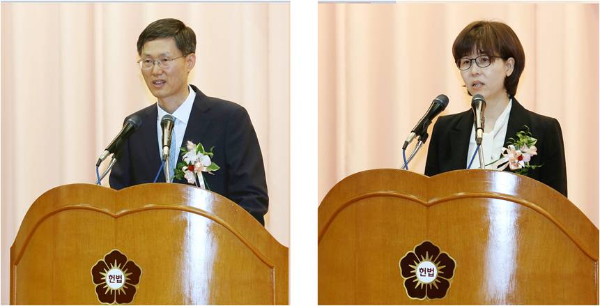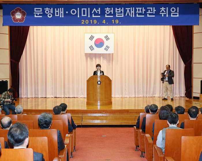 이어 함께 취임한 이미선 신임 재판관은 “기본권 보장의 최후의 보루인 헌법재판소는 국민이 마지막으로 기댈 수 있는 언덕임을 명심하고, 햇살이 누구에게나 공평하게 비치듯 모든 사람이 헌법에서 보장하는 기본권을 누릴 수 있도록 온 힘을 다하겠습니다”라고 말했습니다.