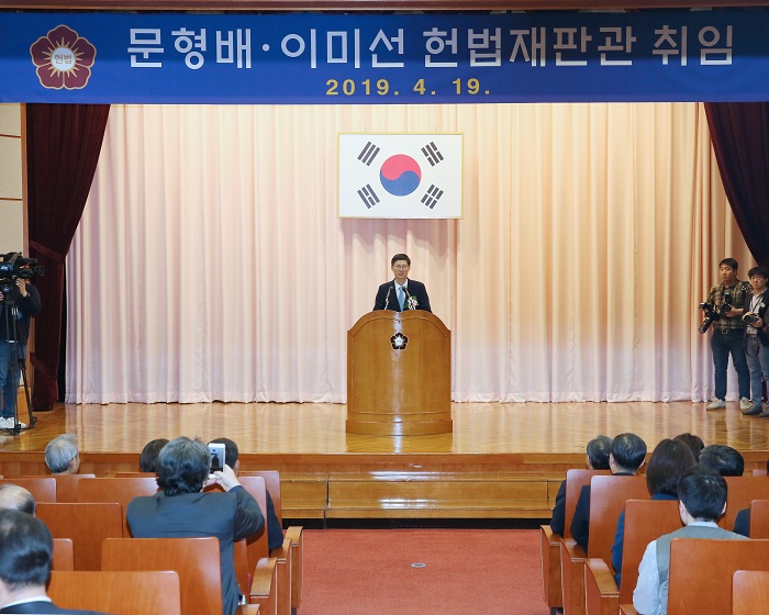 문형배·이미선 신임재판관 취임식이 4월 19일 오후 3시, 헌법재판소 대강당에서 열렸습니다.