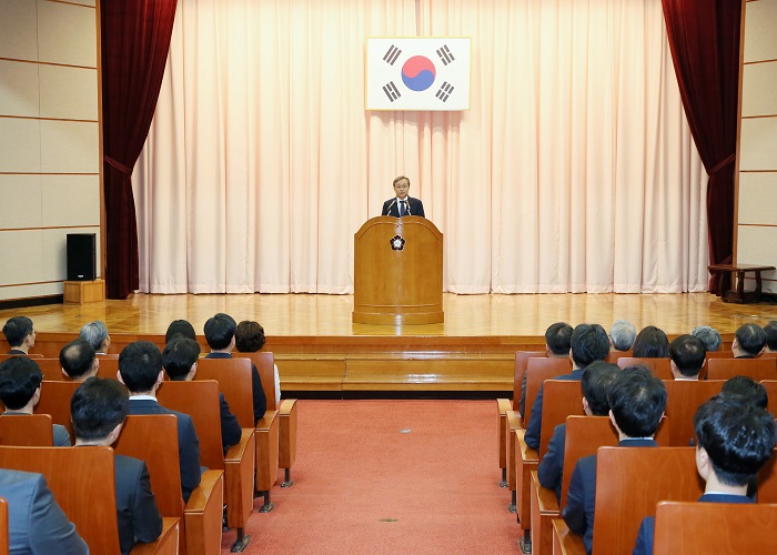 한편, 이날 시무식에서는 지난해 뛰어난 성과를 보인 직원들에 대한 포상이 있었으며, 시무식을 마친 후에는 유남석 재판소장을 비롯한 재판관 및 간부, 모든 직원들이 서로 악수하며 덕담을 나누는 신년인사가 이어졌습니다.