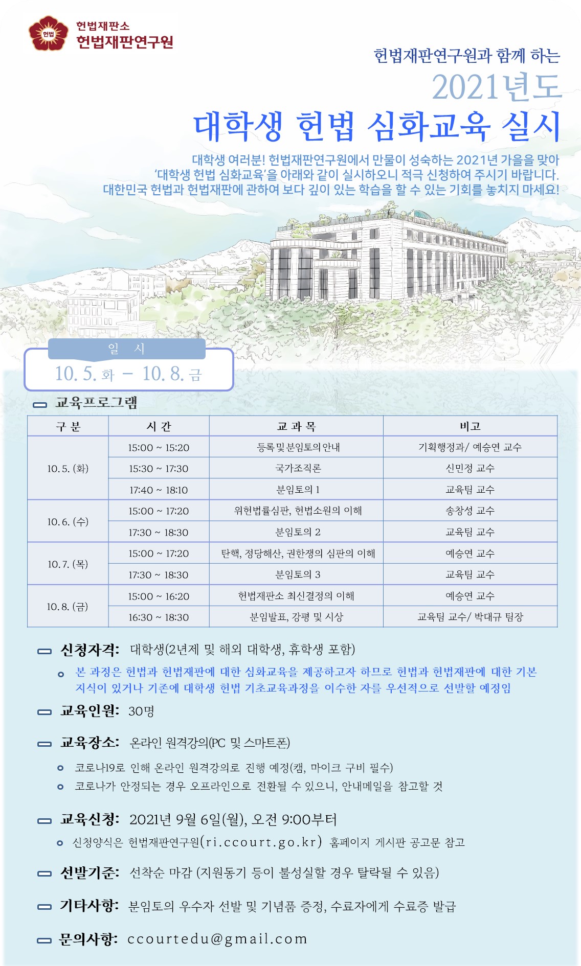 지난 봄학기에 대학생 헌법교육 심화과정을 개설한 바 있습니다.