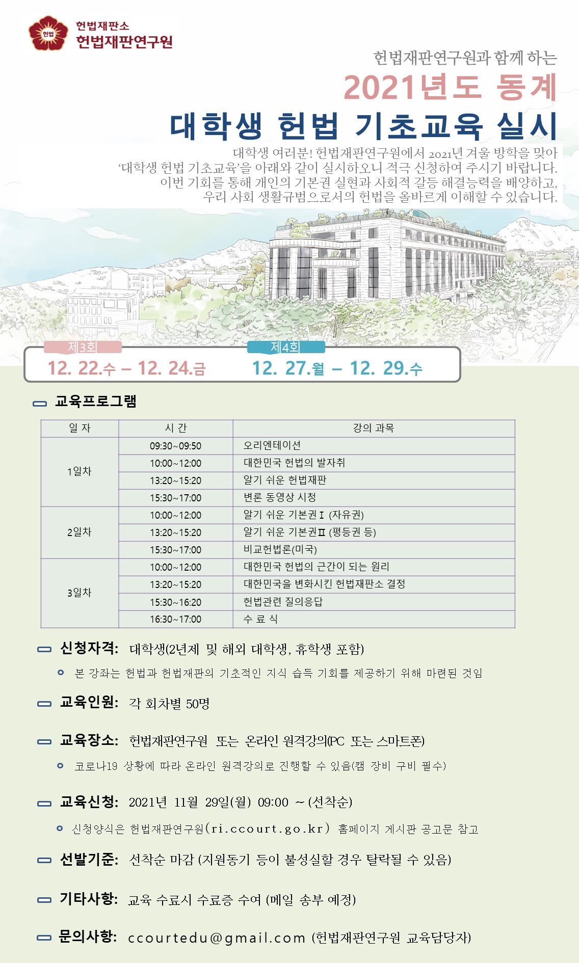 대학생을 위한 헌법 기초교육을 개설하여 운영하고 있습니다.